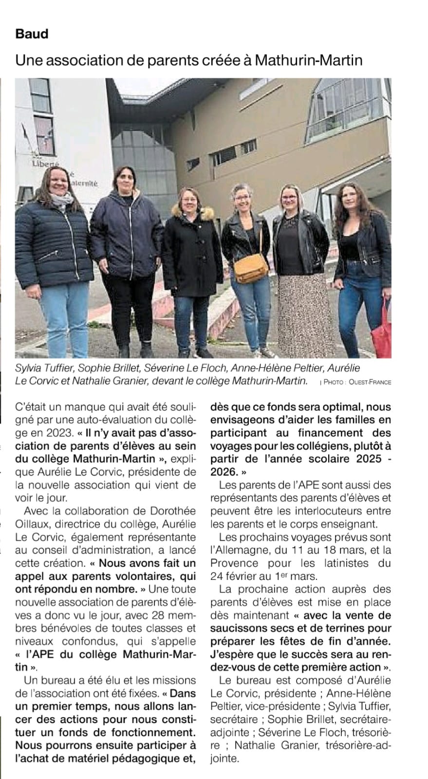 Article journal Ouest france 11/01/2025 |