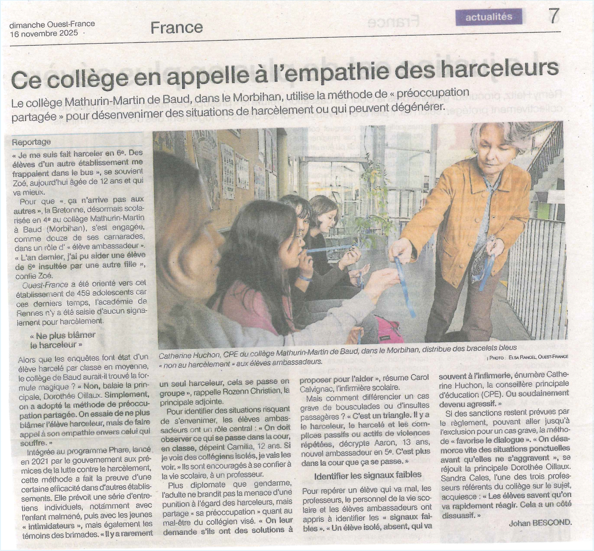 Article sur la lutte contre le harcèlement