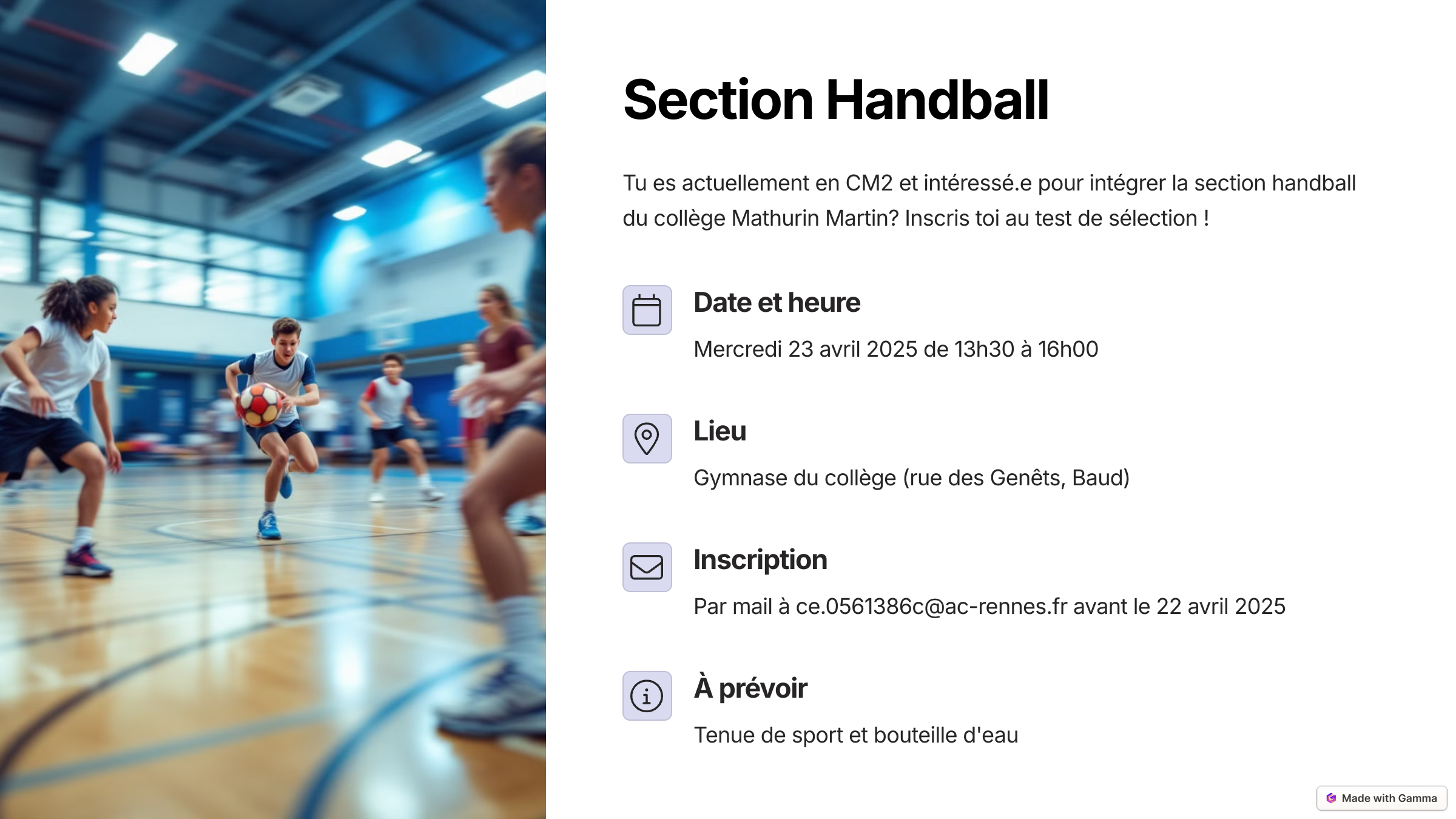 Section Handball - recrutement