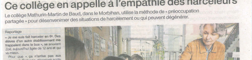 Courant novembre, le journaliste Johan BESCOND du journal le Ouest-France est venu au collège découvrir comment l’établissement tente de remédier aux situations de harcèlement.