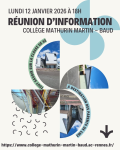 La direction du collège convie les parents d’élèves de CM2 le lundi 12 janvier 2026, à 18h00, afin de présenter la classe de 6e et l’établissement.