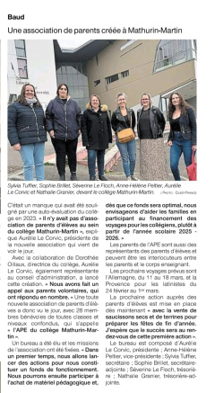Il n’y avait pas d’association de parents officielle sur le collège, c’est maintenant chose faite ! (article Ouest-France du 22 novembre 2024).